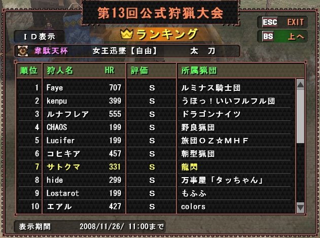 なんか、上位猟団がああやって固まられるとつまんないよね(´・ω・`)